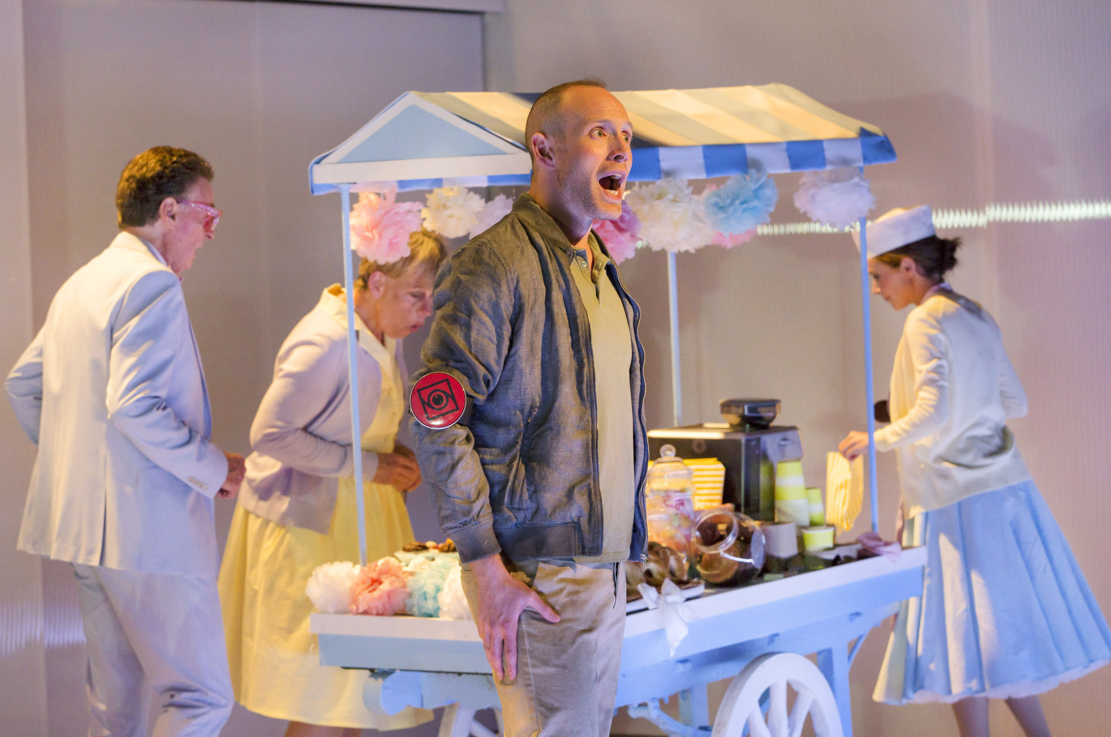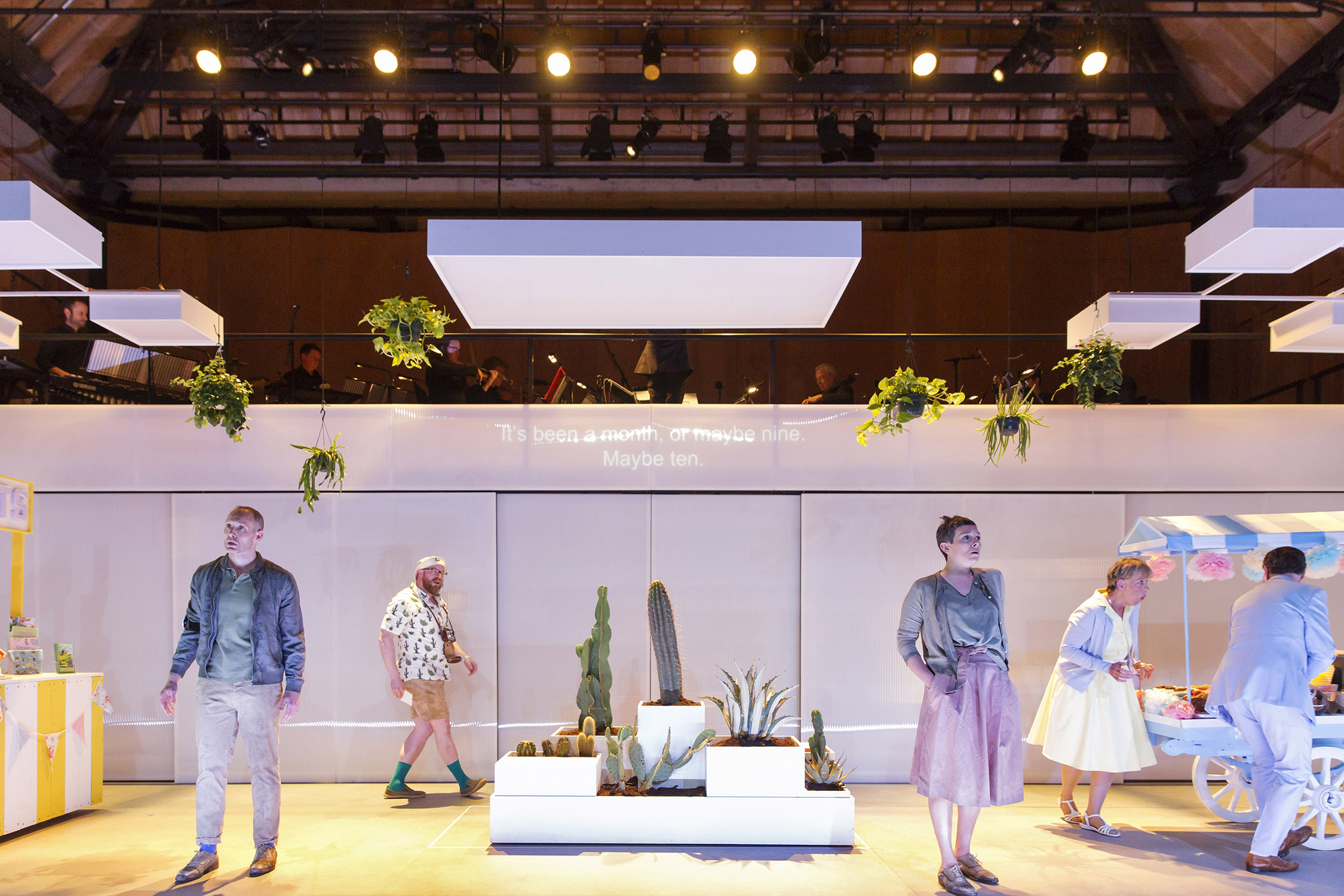 more press"Howard’s menacing use of percussion and grainy-textured instrumental writing, variously monochrome and lush, capture the atmosphere. Her evocative score embraces other composers: a lute song by John Dowland, sung in a brothel scene in which pleasure and pain are played out with clinical horror, and the opening of the trio Soave il Vento, from Mozart’s Così fan Tutte. In Howard’s reworking, it shifts to a noodling, candy-sweet marimba-dominated melody, representing a world of “warmth”. Cacti thrive and a couple indulge themselves in “bagels, cookies, muffins and cupcakes, lemon and poppy seed, toffee and blueberry or double choc-chip”. Try singing that."